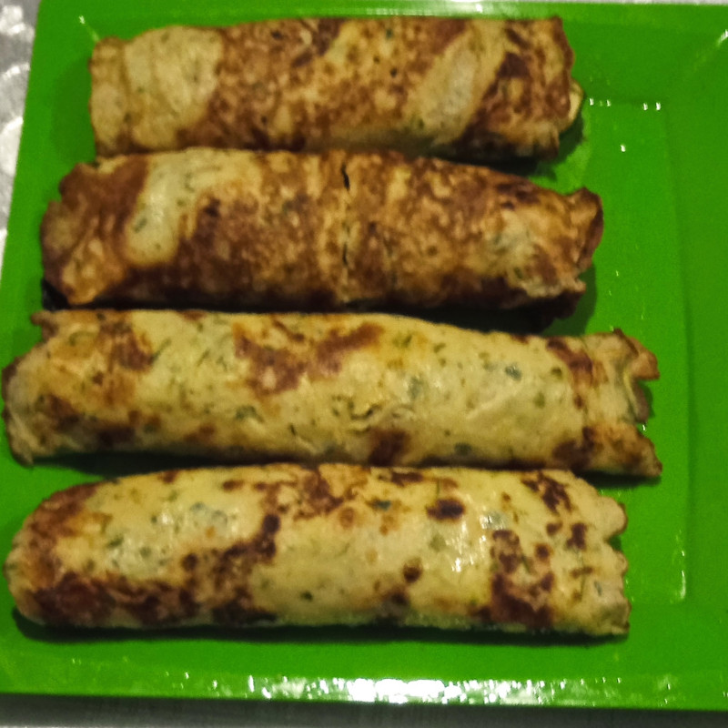 Танюша попробуйте сделать знаете как рулетики с кружочками жареными делайте блинчики с двух сторон обжаривайте но блинное тесто добавляете укроп цукини на тёрочке мелкой чесночок укроп чуть-чуть подсолили четыре ложки муки мало значит ещё докладывайте так чтобы он не лопался блин