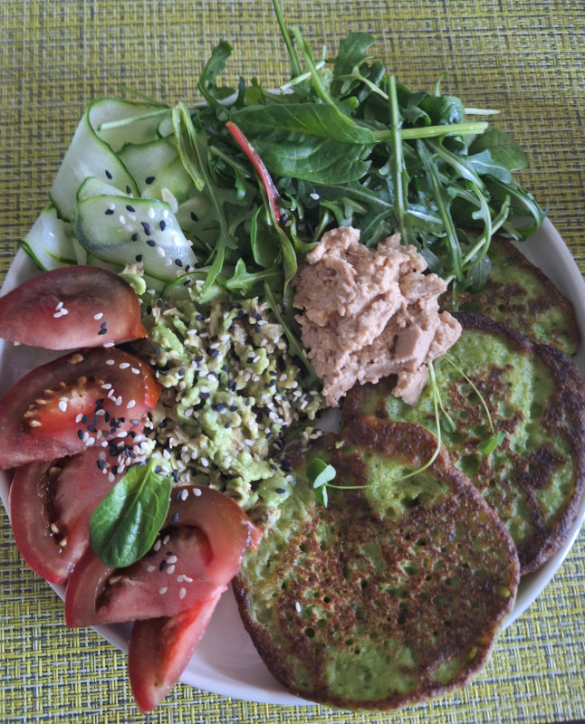 Чечевицу замачиваем на ночь, утром промываем. В блендере пробиваем её до однородной массы с водой. В массу добавляем клетчатку, соду, гашённую лимонным соком, масло гхи, соль и травы, и хорошо перемешиваем.