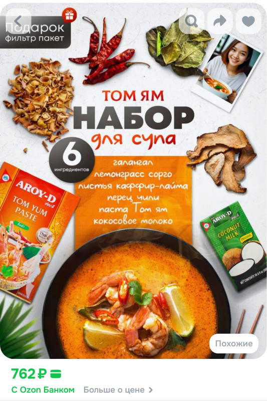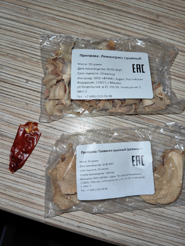 Специи для том яма можно купить в различных наборах на озоне, вб и др. магазинах. Для первого раза я купила готовый набор, в нем же и подробный пошаговый рецепт, что очень удобно для новичка. Но благодаря отзывам в приложенном рецепте я изменила некоторые пропорции, например, количество креветок увеличила от нескольких штук до 800 гр, грибочков тоже побольше положила. Все же мы любим супчики погуще, а не один бульон)