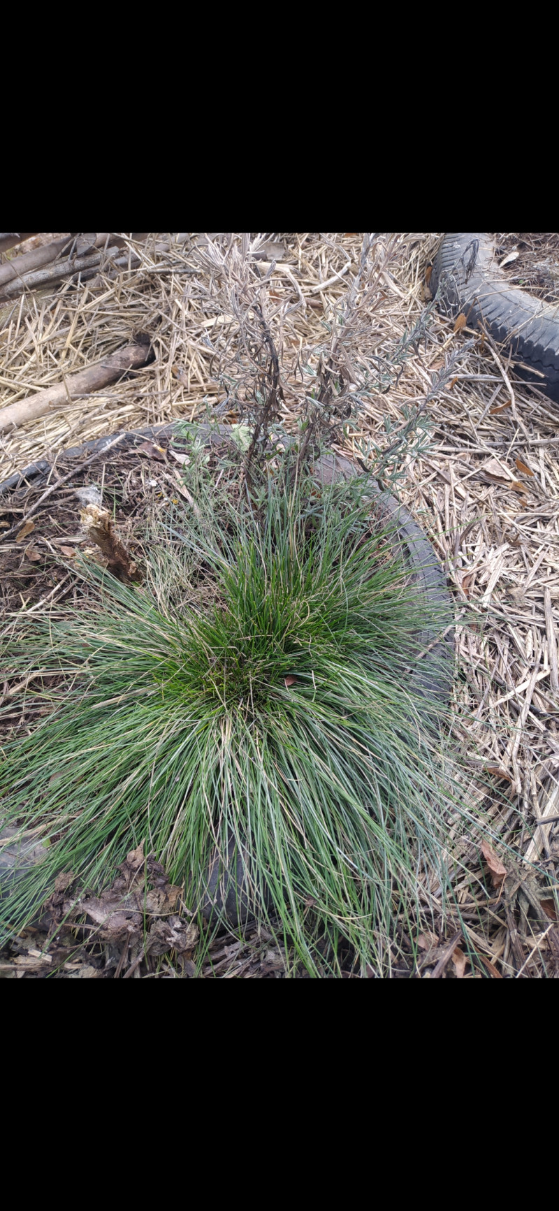 Овсяница голубая тоже. Только мышки подгрызли, видимо гнездо на зиму делали. За ней лаванда - верхушка сухая, но половина нижняя зелёная))