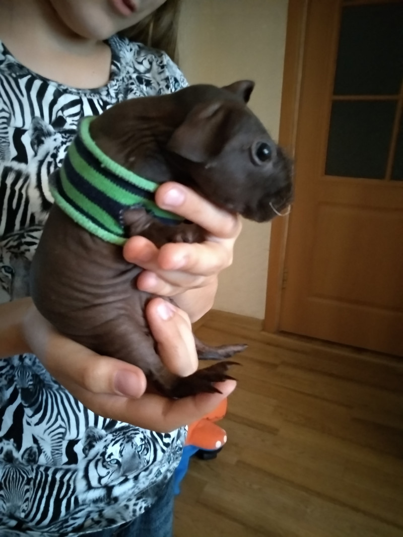 У знакомых живёт вот такой лысый свинёныш) умненькая, знает своих, громко посвистывает, гипоаллергенная. Но забот с ней немало)