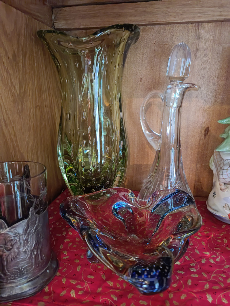 Пузырьковые ваза и пепельница. Ну хрусталя и фарфора немеренно. Я тоже в пути к своему большому шкафу оттенка шампань, а пока все разрозненно по мелким буфетам biggrin_rt_40.gif