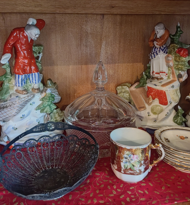 Старик и старуха, ЛФЗ, из этого трио не хватает пока золотой рыбки) Вот такую посуду собираю, Германия 40-60-х) охочусь на Розенталь, Рейхенбах, Кахла, а Мейссен для меня очень дорого) Пузырьковые ваза и пепельница. Ну хрусталя и фарфора немеренно. Я тоже в пути к своему большому шкафу оттенка шампань, а пока все разрозненно по мелким буфетам