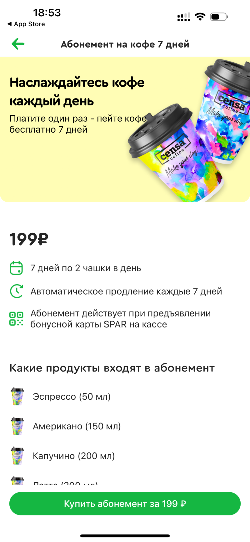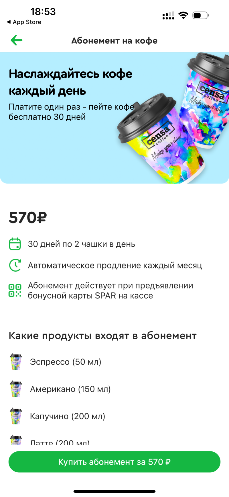 Например, абонемент на 20 чашек кофе.