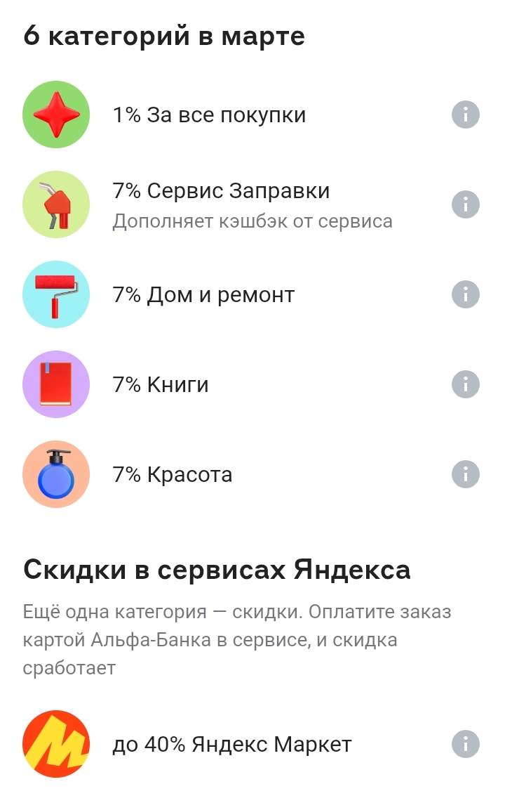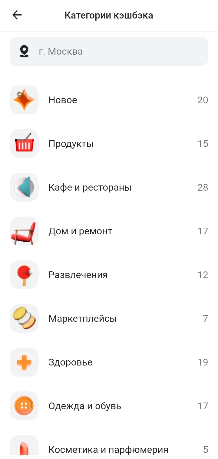 Мне нравится группировка кэшбеков от партнеров в Альфе по категориям.