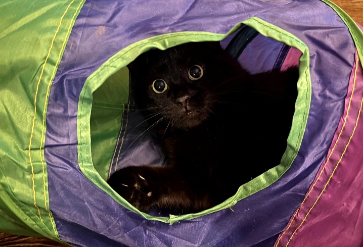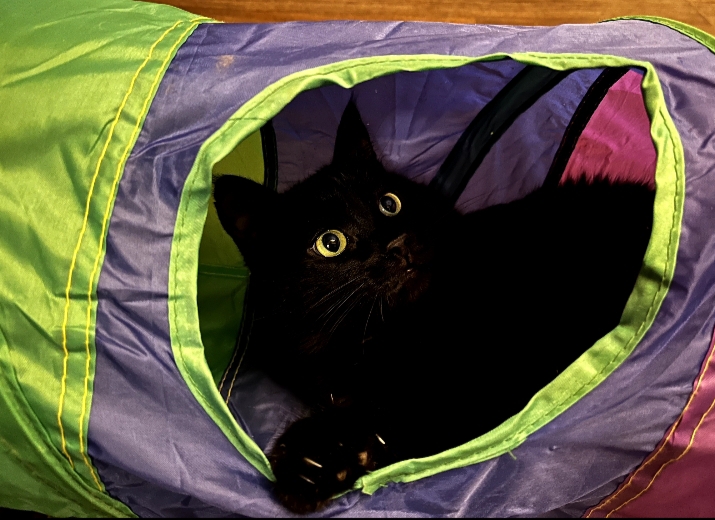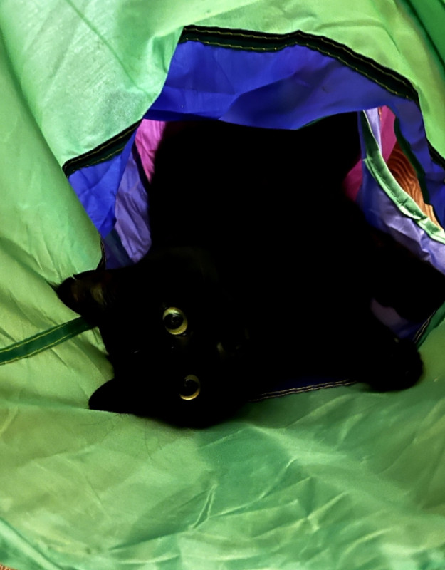 Мои на нг получили именные ошейники с номером телефона, но больше всего Гринчу зашла труба. Живёт только в ней теперь и ждёт, когда будут с ним в ней играть.