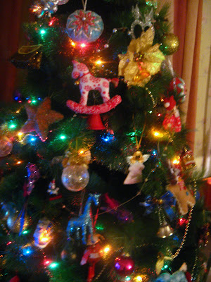 А вот и наша елочка: очень многие игрушки на ней рукотворные.