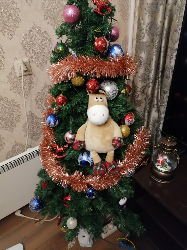 У меня времени нет наряжать, пока только макушка от старой елки стоит Казать???