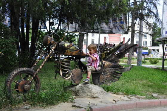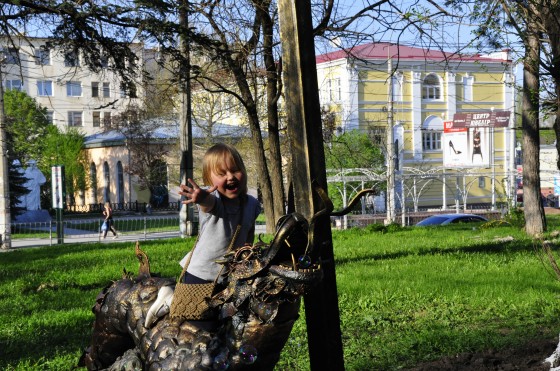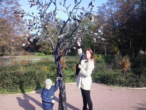 А у нас в городе есть кованные скамейки, скульптуры и даже яблонька с молодильными (надеюсь) яблочками!