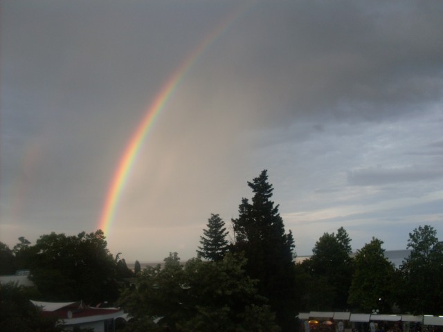 Геленджик, Краснодарский край, санаторий Дружба, концерт отдыхающих, танцуют профессиональные неслышащие артисты, которые туда отдыхать приехали. И в середине концерта пошел дождик, а после танца под дождем появилась радуга.