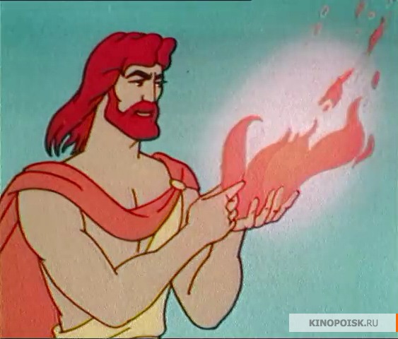 огня нет ,но положение рук , голова и плащ дали такую асациацию