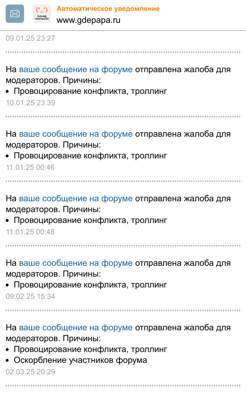 Оооо) Я не буду писать в этой теме ни буквы))) Потому как даже одна буква Станет причиной 5-6 предупреждений Троллинг и провокация конфликта)))) В соседней теме На просьбу «не переходить на личность ТС, а обсуждать просто ситуацию» заработала 2) Без конца получаю баны в темах и жалобы на форуме за то, что просто имею собственное мнение отличающееся от мнения большинства Жалобы поступают даже если пишешь обычными словами и без оскорблений какой либо личности. Всегда (ну дост