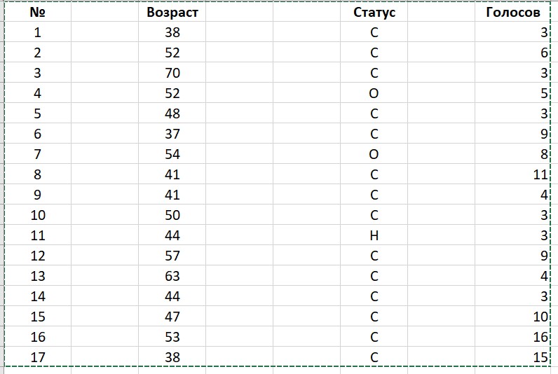№ Возраст Статус Голосов