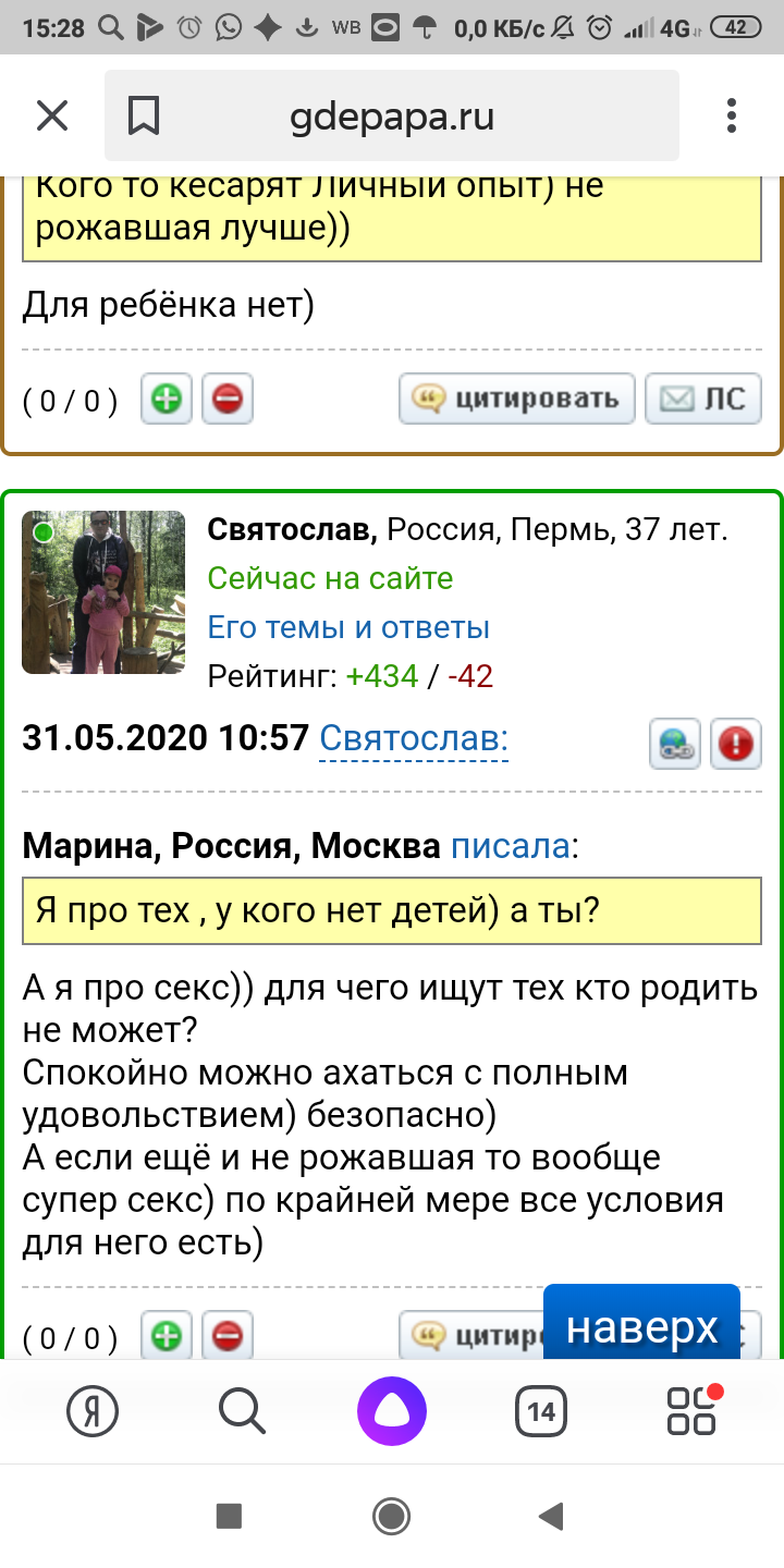 Я - как бы тоже не сноб ,но должны же быть рамки это форум а не тет а тет с мужиками или откровенные разговоры в паре.