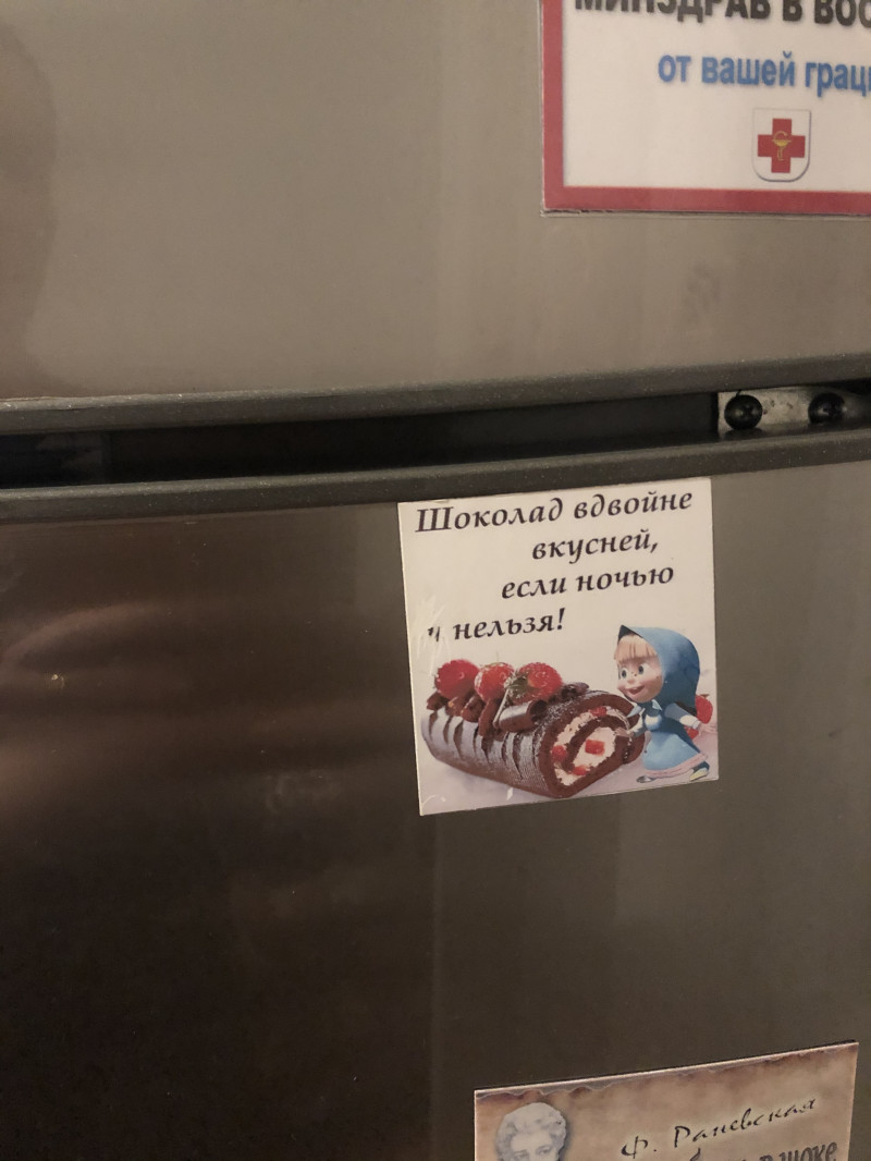 девушка повесила на холодильнике стикер