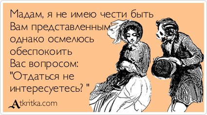 Доброго вечера, Дамы и остальные товарищи. Вот решил поделиться с вами своей проблемой и надеюсь найти понимание, ну и хорошие советы. Я на свидание хожу нечасто, но культурно. Цветы, конфеты, кафе - в кафе конечно нервничаю, слов нужных не нахожу, робею, все больше молчу и внимаю. Потом после кафе предлагаю даме прогуляться (все по этикету) - ну и достаю сборник стихов С.Есенина или А.С.Пушкина или М.Ю.Лермонтова. Вы так прекрасны, бу-бу-бу Вы так красивы, бу-бу-бу Я очарован, бу-бу-