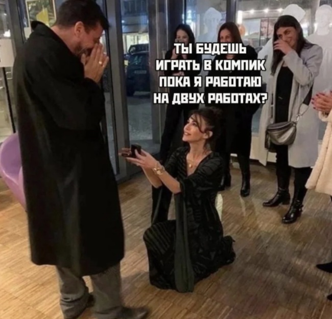 Как одна знакомая моя сделала: розу в зубы, черную шляпу на голову и на одно колено! Предложение мужчине)