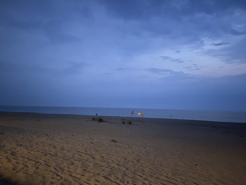 Тиха Балтийская ночь. Еле слышно плещется волна. Даже янтарщики приглушили свои лодки. Вдали не видно ни зги…. Тёплый влажный воздух окутывает и убаюкивает.