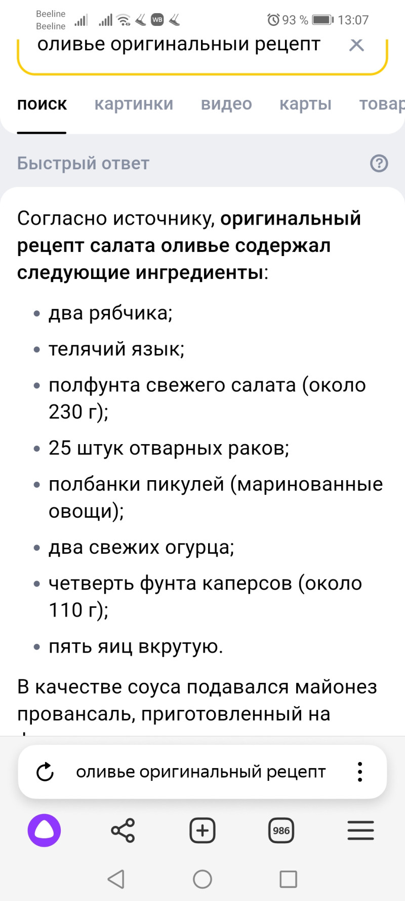 Мой Хороший, пошли в Яръ? А то прям живу на этой улице и ни разу там не была.., а вот это оливье там точно водится, очень хочу его оценить)