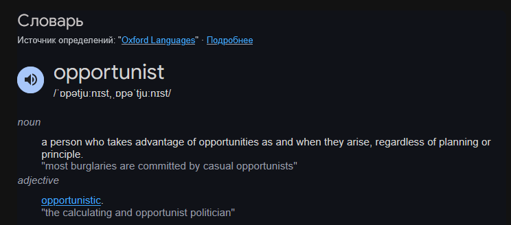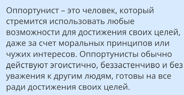 а, это от человека зависит, я например оппортунист и конформист, это чтобы не писать "беспринципный", потому что там негативная коннотация