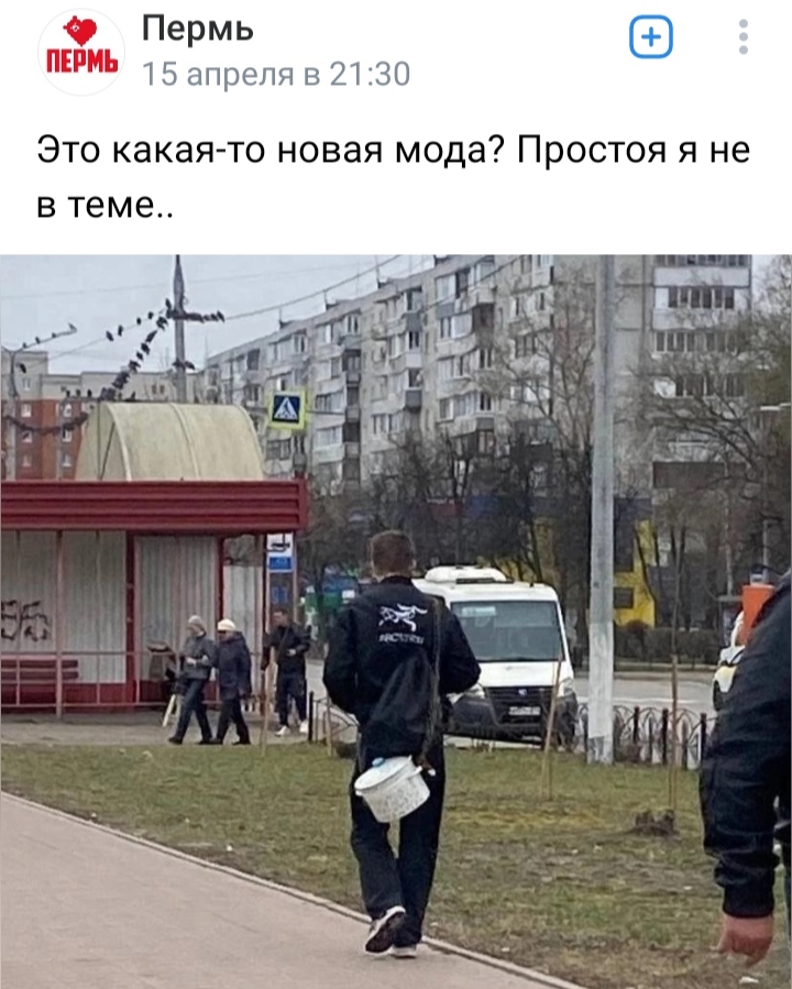 В Перми опять у нас молодёжь чудит. Мало Пермь прославили не тем, чем надо бы.Таких серьёзно воспринимать естественно не будут девушки.Либо мода бежит семимильными шагами, а может и галопом впереди молодёжи.