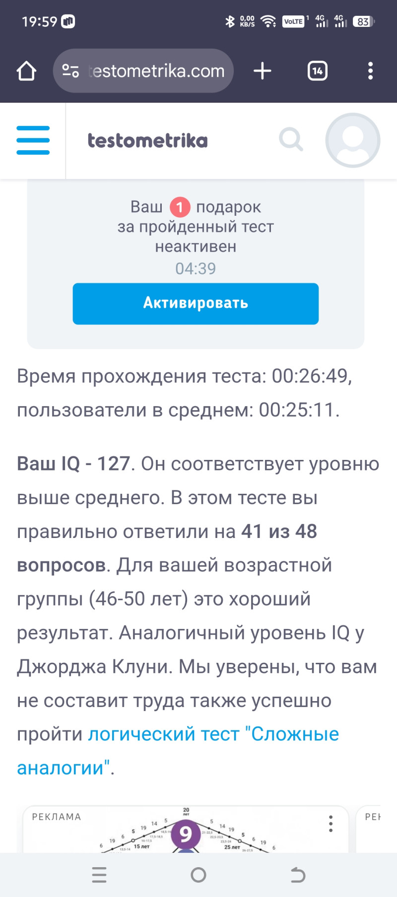 Интересная штука Последние 6 вопросов я не отвечала сломала мозг уже 😂 Что-то мне кажется маловато это Какой вообще должен быть показатель?