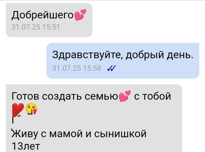 Скажу честно, меня брат зарегистрировал на этом сайте через пол года после его основания). Просто во время пандемии у меня неполадки были с телефоном, пришлось предыдущую анкету удалить. Я и искала мужчину с детьми. Но вот так вот настолько в лоб (не была готова).Неужели человеку совершенно без разницы с кем он жизнь связать собирается.