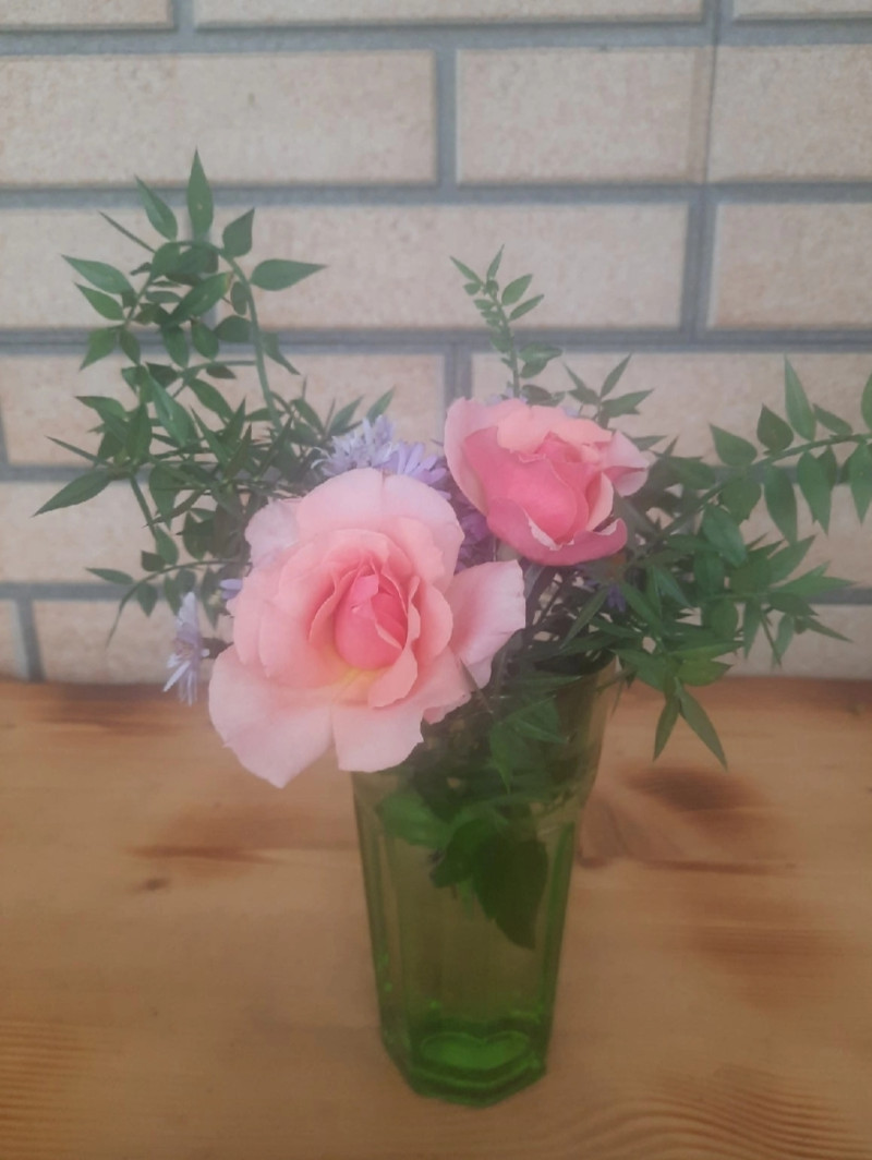 Это мне ученица подарила. Только один букет в вазу влез, поэтому он стоит отдельно.