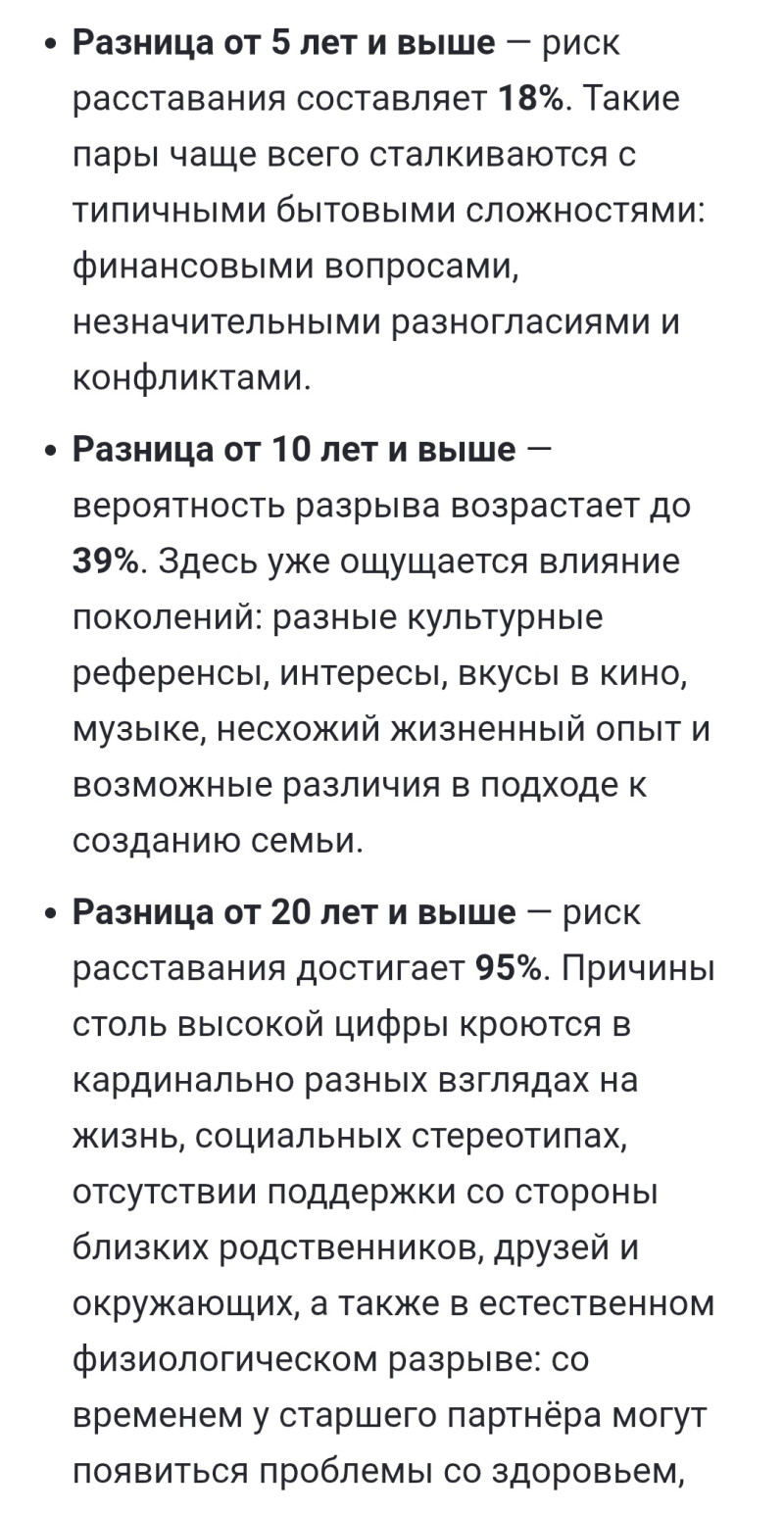 Кстати, статистику видела, выборка из 3000 семей. Зависимость от разницы в возрасте и вероятности развода.