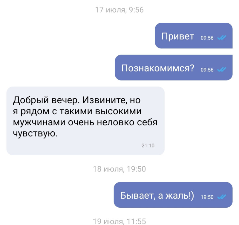 У меня с мужем был одинаковый рост (~165 см). А сейчас познакомиться предлагают мужчины ростом от 180. Мне нравится