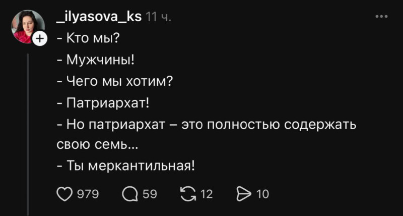 И таки да, я в разводе с 18 года. Довольно много общаюсь с женщинами. И по работе и вне работы. Но не могу пменять что с женщинами не так? Что произошло в их мозгах с понятием "отношения". Такое ощущение, что все ищут не партнёра, а спонсора. Ну ладно молодеж, у них ни мозга, ни образования, ни воспитания. Они кроме "тик - тока" ни где информацию не получают. По этому у них запросы полный треш. Но те кто старше 30, этим то кто так в мозг нагадил?