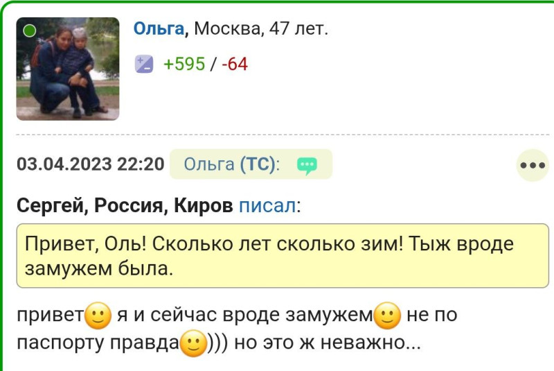 Я не оформляла отношения юридически, мы называли мужем и женой себя третьим лицам, некоторые даже не догадывались, что мы официально не женаты... Я не хотела. Он оч хотел. Я думаю, мы бы поженились бы чуть позже, как и планировали. На форуме за это время я ни с кем не переписывалась в плане встреч, поэтому никаких флешбэков не ощущаю, в отличие от Павликаsmile_rt_40.png))