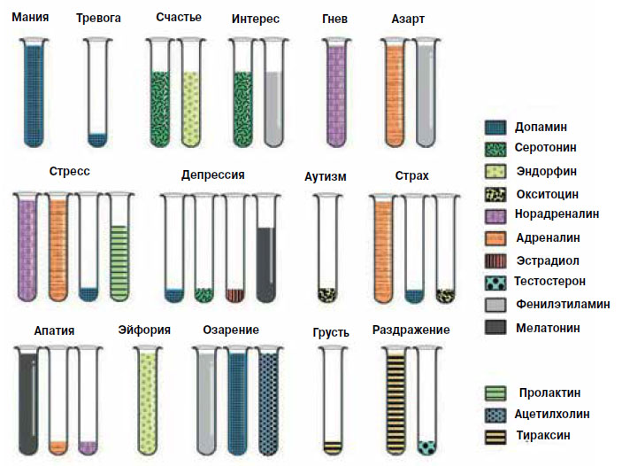 Давайте представим мозг как арену, где взаимодействуют разные химические вещества.