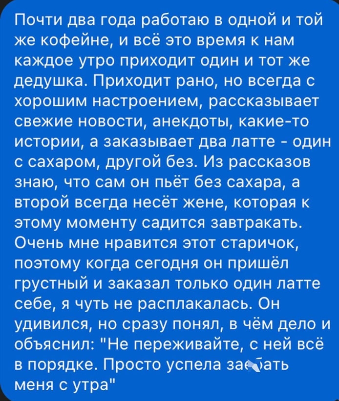 А вот в первом браке да, это был пипец. Тотальный унизительный контроль. Телефонов небыло, слава богу... Но и опоздание с работы в пять минут, и зачем шоколадку купила, и чё ты всем улыбаешься, о чём тебе с мамой наедине общаться- вместе сходим, и подружки у тебя шалавы. Всегда вспоминаю, когда "женщины разрушают брак". И никогда не спорю
