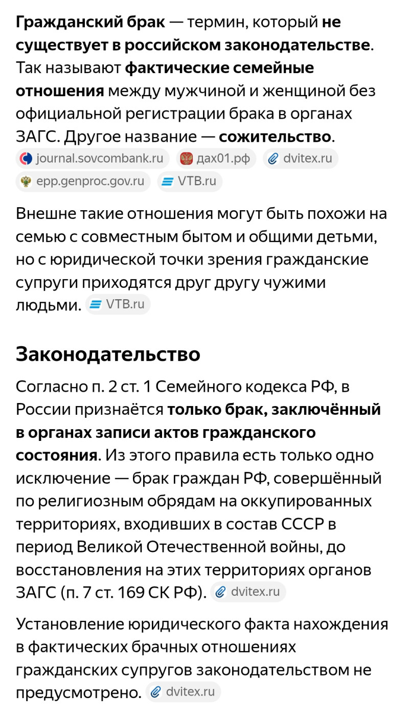 гражданский брак — это отношения, в которых пара живёт вместе, ведёт общее хозяйство, у неё могут быть общие дети, но при этом люди не расписаны.