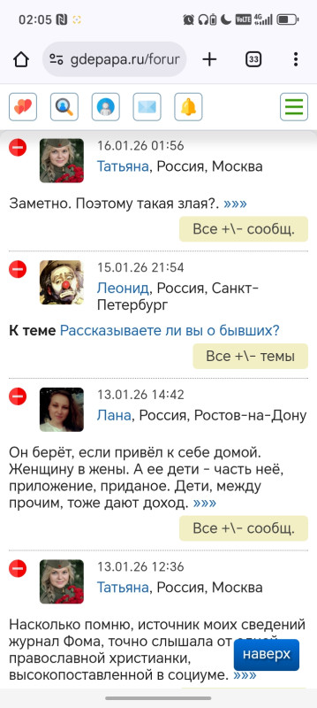 Я на этом сайте трех, если не более..мужчин отсеяла, потому что прям отворачивает ...встречаемся, рады друг друга видеть, идём по запланированным делам. И..начинается: "а я помню с той-то у меня не так было.." А ещё с некоторыми прям звонок во время нашего свидания..и он пол часа решает её проблемы.. ))) У меня сразу срабатывал разворот на 180 ))) Я ещё к Нему не успела прикипеть, а тут сразу должна окунуться в его семью бывших отношений? Вообщем, не готова начинать отношения с те