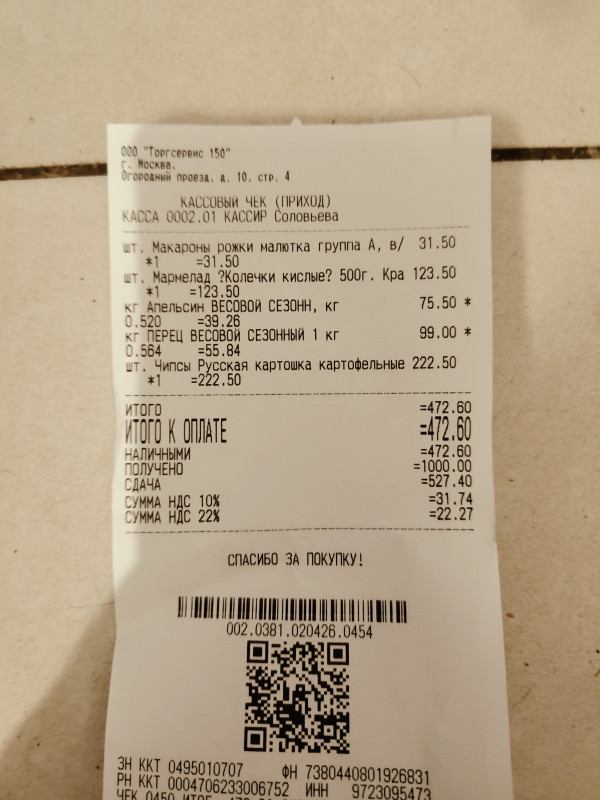 Но вот чек и сам товар.