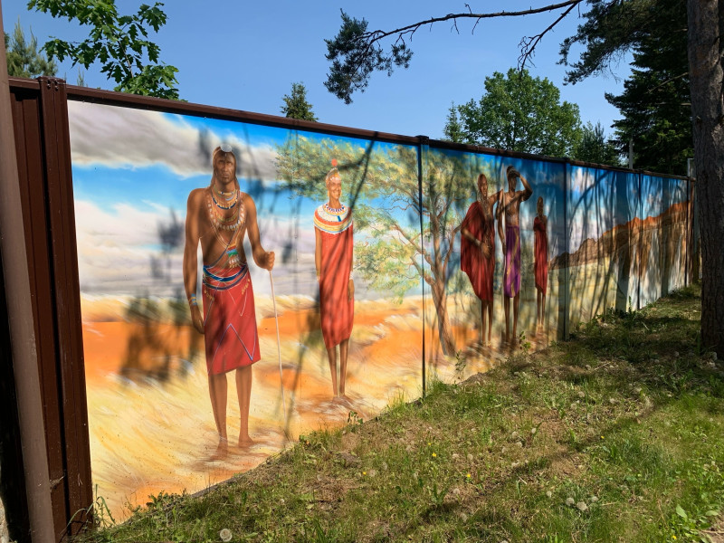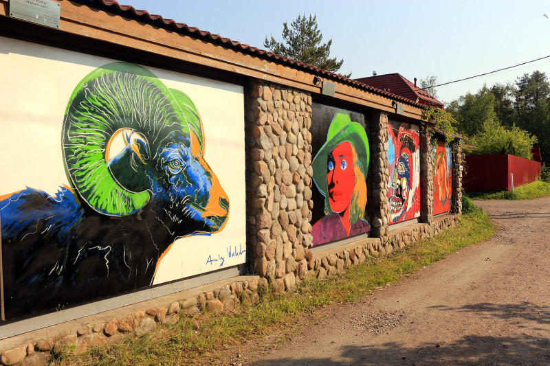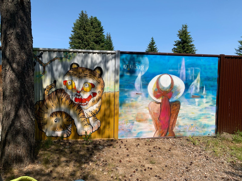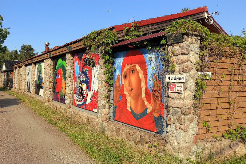В Белоострове, где в детстве у нас была дача.. Хозяин один из дач вот какую красоту по внешнему периметру своего забора сделал.