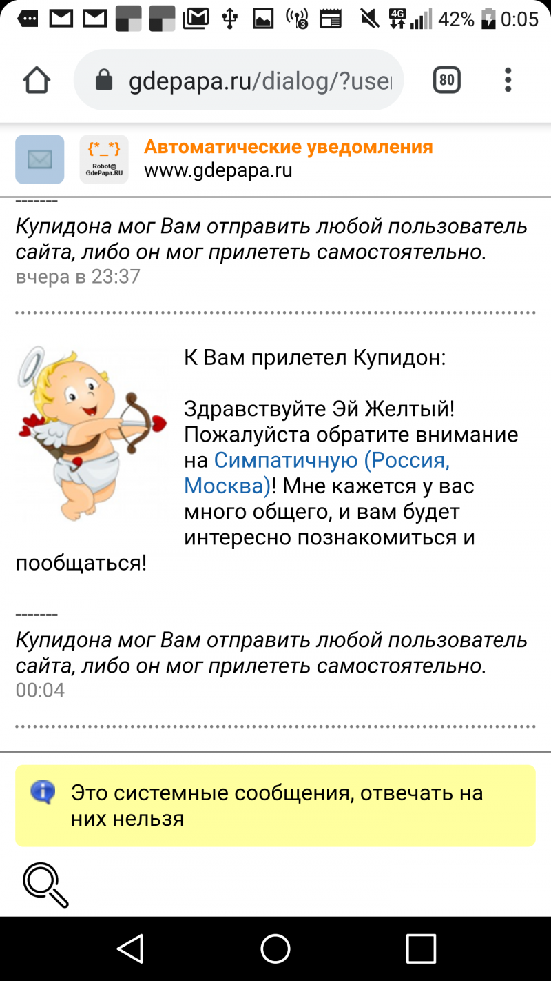 Ага. Пожалуйся Леониду Трындец. А что мне никто купидонов не шлет? Хочу купидонов