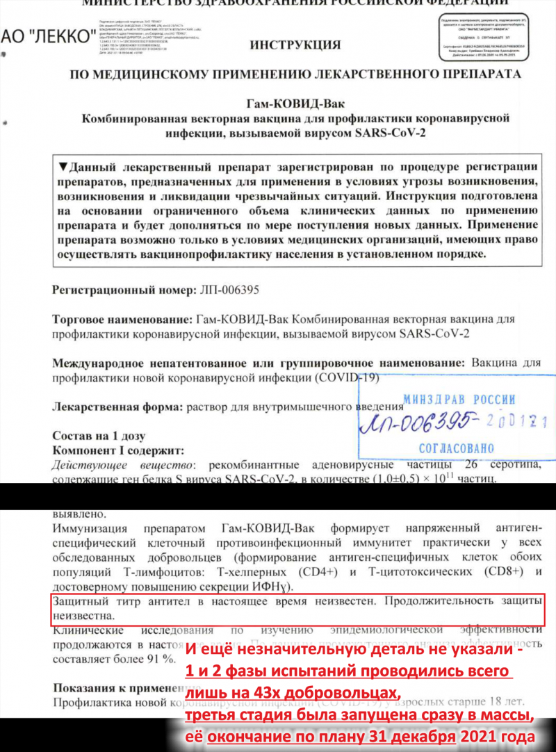 Ведь речь идет о препарате, который не прошел необходимые исследования, а значит является экспериментальным, что уже не допускает его в массовое использование, тем более в принудительной форме(с)