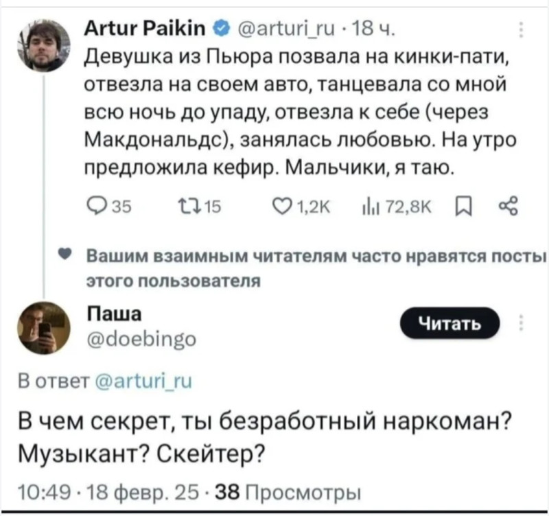 Паш, ты норм? Ты бы еще сводки какие из МВД постил, и спрашивал, а вы так делали? Эт как мы спросим, расчленяешь ли та каждый день трупы и кидаешь в Фонтанку...