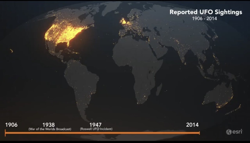 А еще есть карта сообщений о НЛО , видео зарисовка за 115 лет