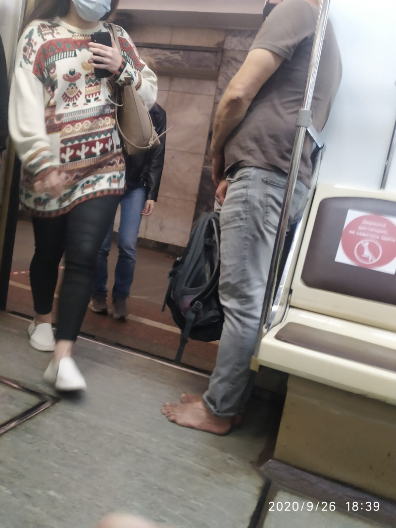 Обувь? чтобы спали в метро - видела, а чтобы перед сном разувались в метро - не видела Хотя мож сейчас так модно?