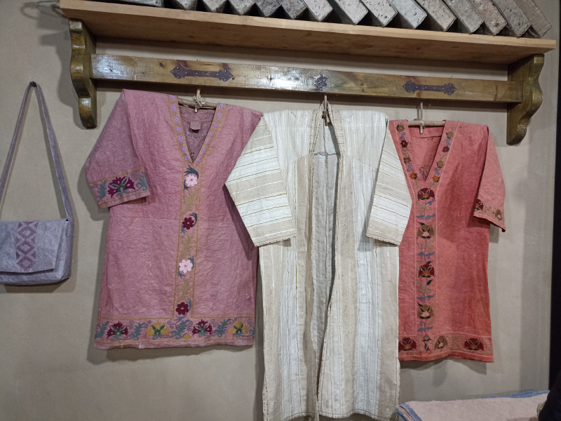 Увидел буклет всера в гостинице. Решил сегодня доехать. Берут ветки тутовника. Снимают кору. Получают лыко.