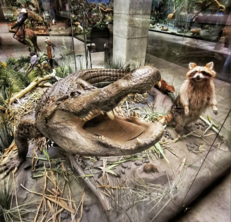 Вот даже Енота можно там увидеть рядом с чучелом крокодила. Накусался зубастый а теперь просто экспонат скалящайся.