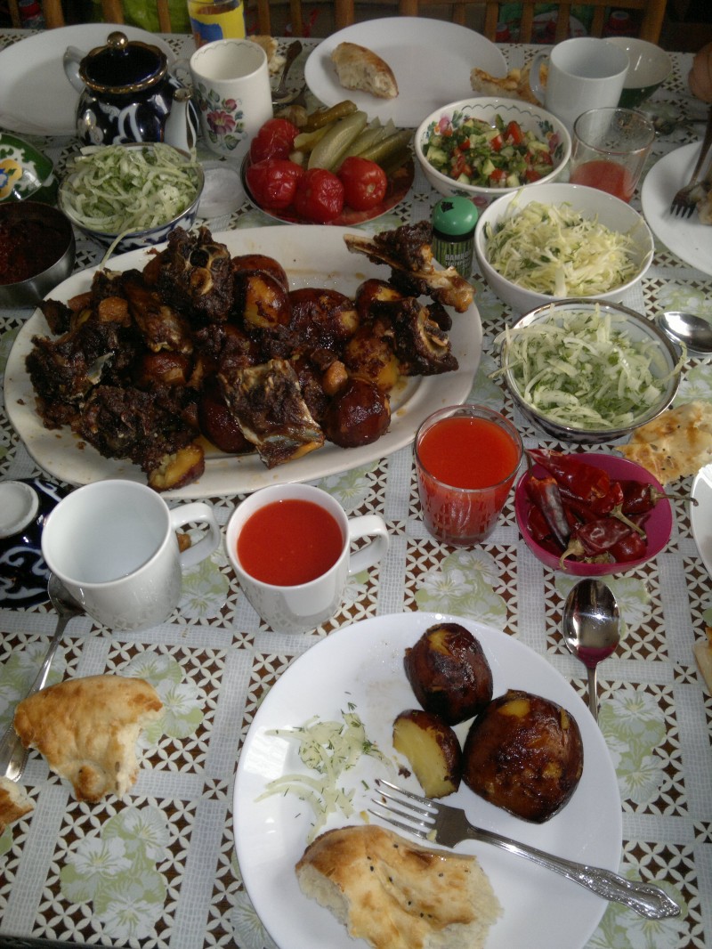 Начало трапезы. Это моя тарелка. Картошечка жареная. Без мяса.