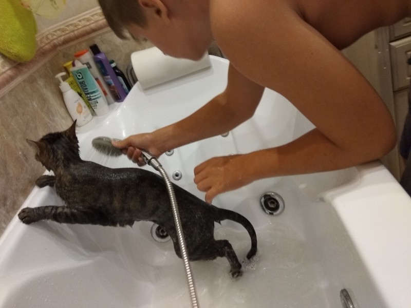 О, выставка кошек! У нашего кончились "каникулы Мурзика", теперь ходит по квартире из угла в угол. Ну и водные процедуры после дачной жизни. Лето это маленькая жизнь))