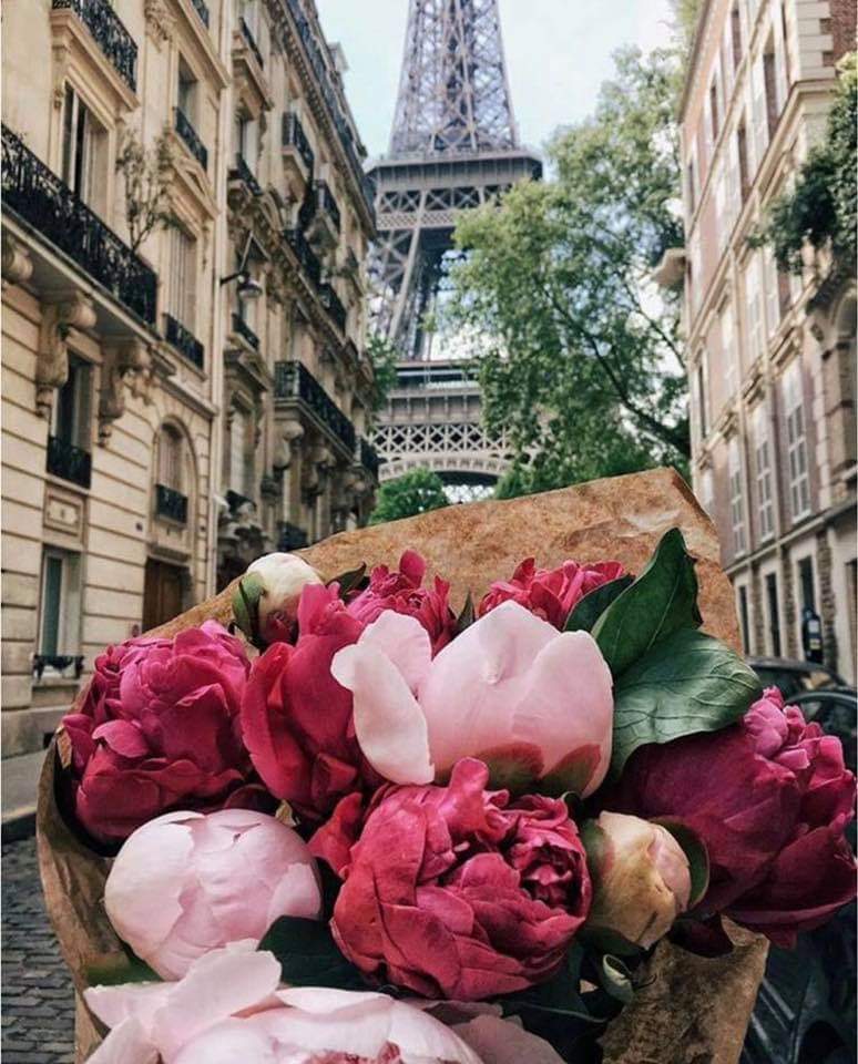 Эйфелева башня. Париж. Франция. Цветы.