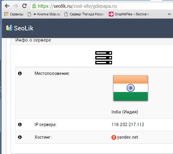 Нет, не в Индии. В Германии: "Местоположение: Фалькенштайн (Германия). Домены на этом IP: gdepapa.ru".