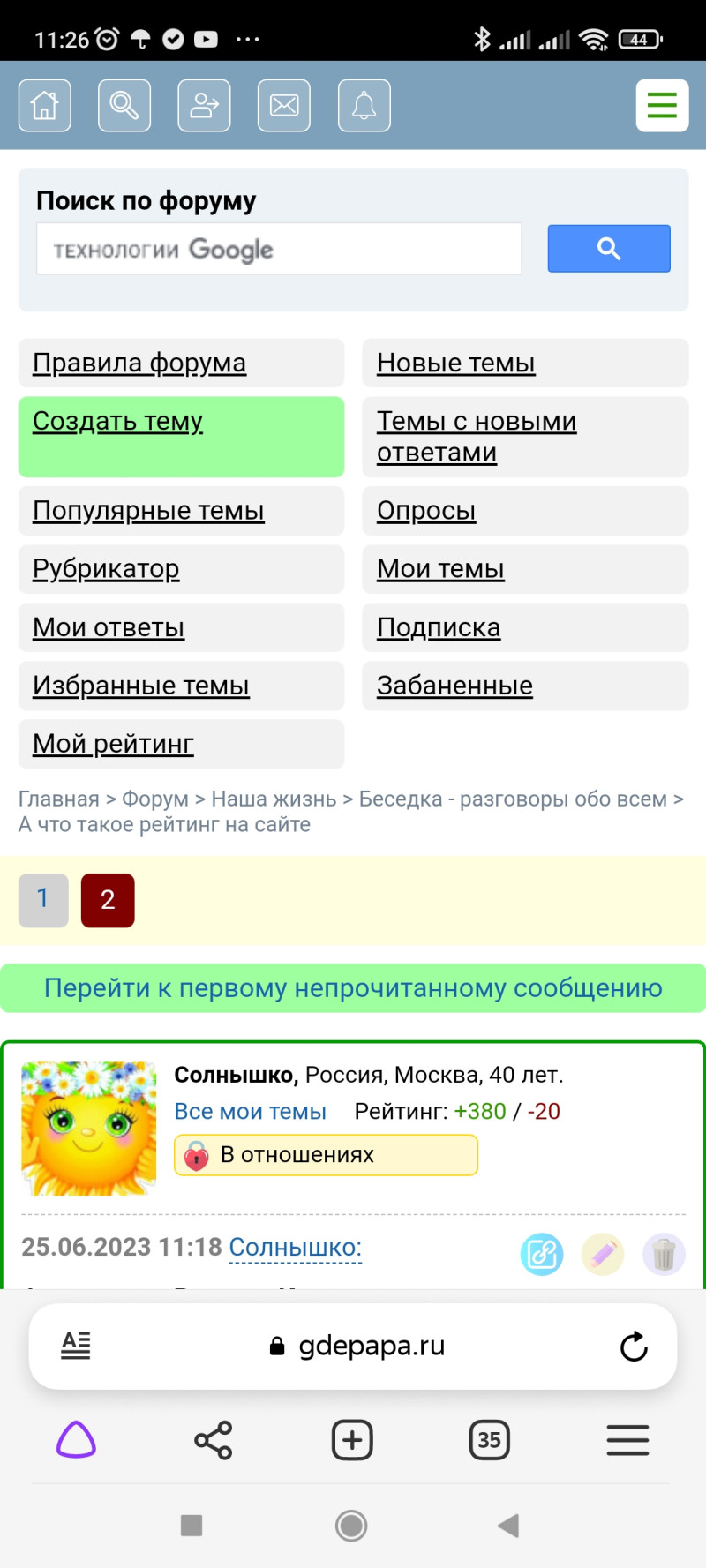 Солнышко, Москва, 43 года.